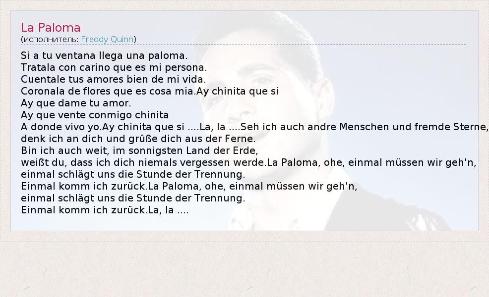 А как ты думаешь, о чем песня "La Paloma" ?