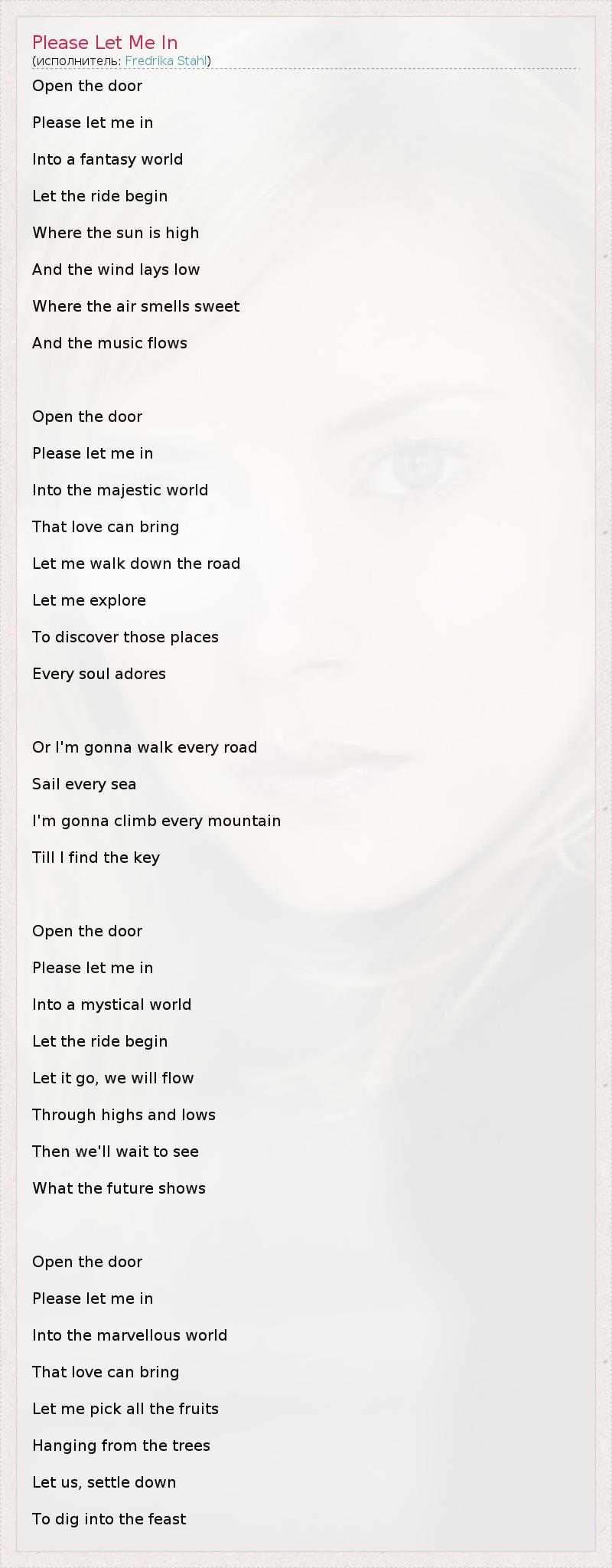 А как ты думаешь, о чем песня "Please Let Me In" ?