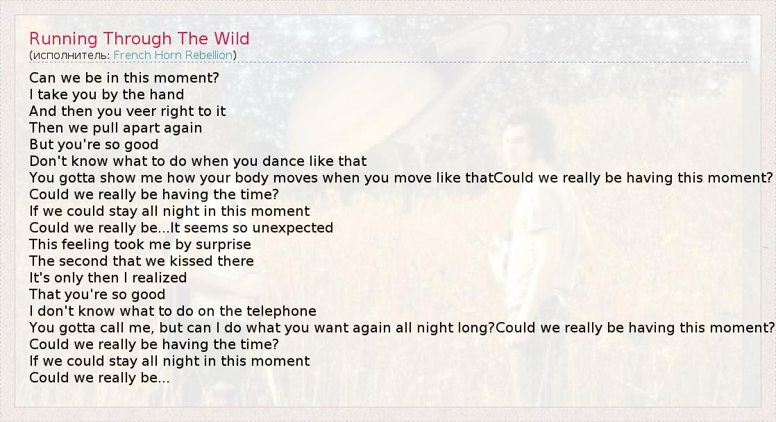 А как ты думаешь, о чем песня "Running Through The Wild" ?
