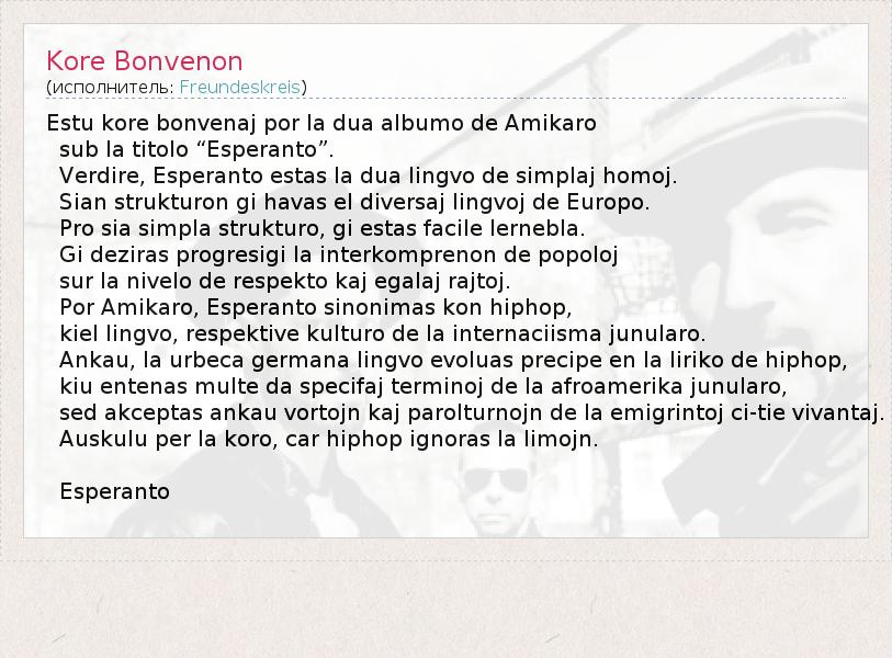 Por Amikaro, Esperanto sinonimas kon hiphop,