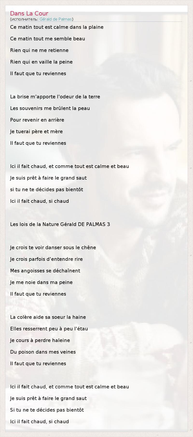 А как ты думаешь, о чем песня "Dans La Cour" ?
