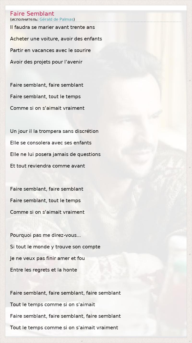 А как ты думаешь, о чем песня "Faire Semblant" ?