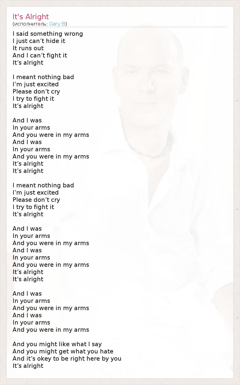 Это интересно:Gary B композитор, продюсер, исполнитель и гитарист. Родился в Лондоне, но сейчас живет на Ибице. Gary B начинал как сессионный гитарист, затем, как композитор и продюсер участвовал во многих проектах, в том числе с Robert Palmer, Jimmy Summerville, The Banderas, Definition of Sound и Sonique. Также он является со-автором Miro, продюсера танцевальных проектов. Gary B начал выпускать треки для серии Café del Mar в 2004-ом году и до сих пор участвует... продолжение