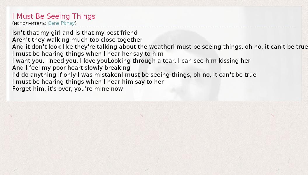 А как ты думаешь, о чем песня "I Must Be Seeing Things" ?