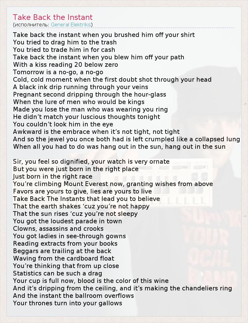 А как ты думаешь, о чем песня "Take Back the Instant" ?