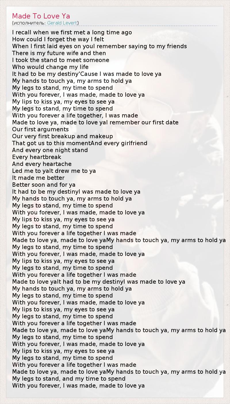 А как ты думаешь, о чем песня "Made To Love Ya" ?