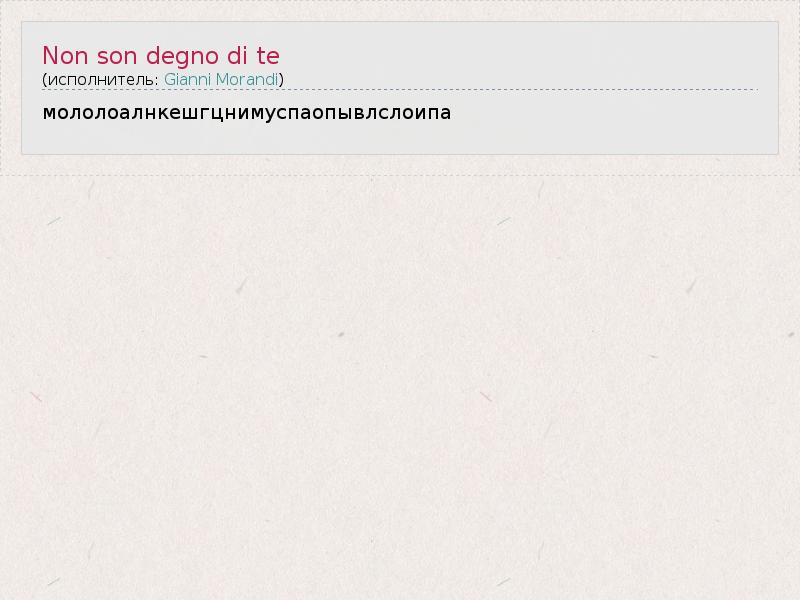 А как ты думаешь, о чем песня "Non son degno di te" ?