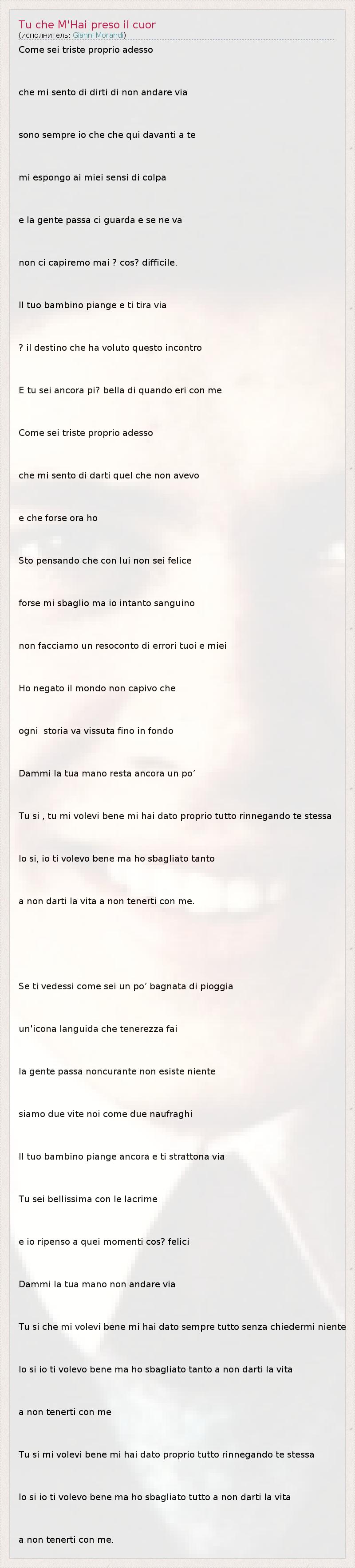 ГлавнаяИсполнителиGianni MorandiTu che M'Hai preso il cuor