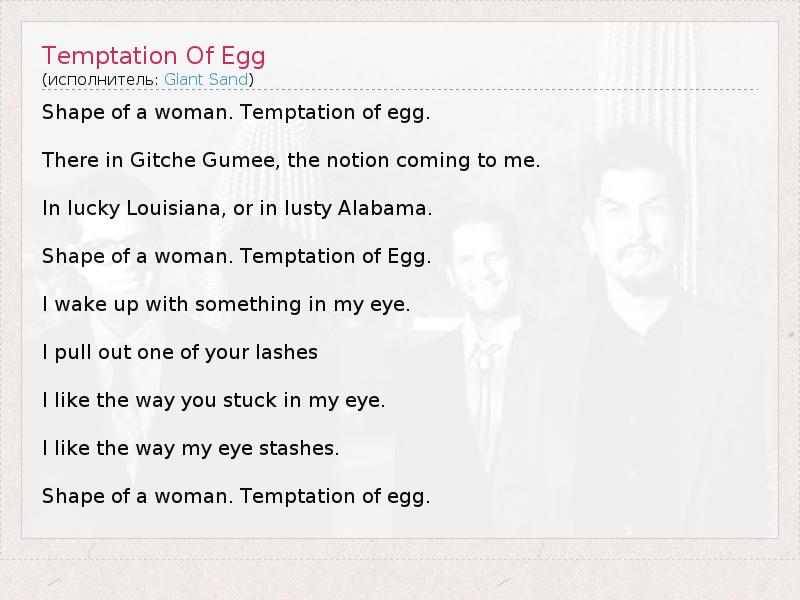 А как ты думаешь, о чем песня "Temptation Of Egg" ?