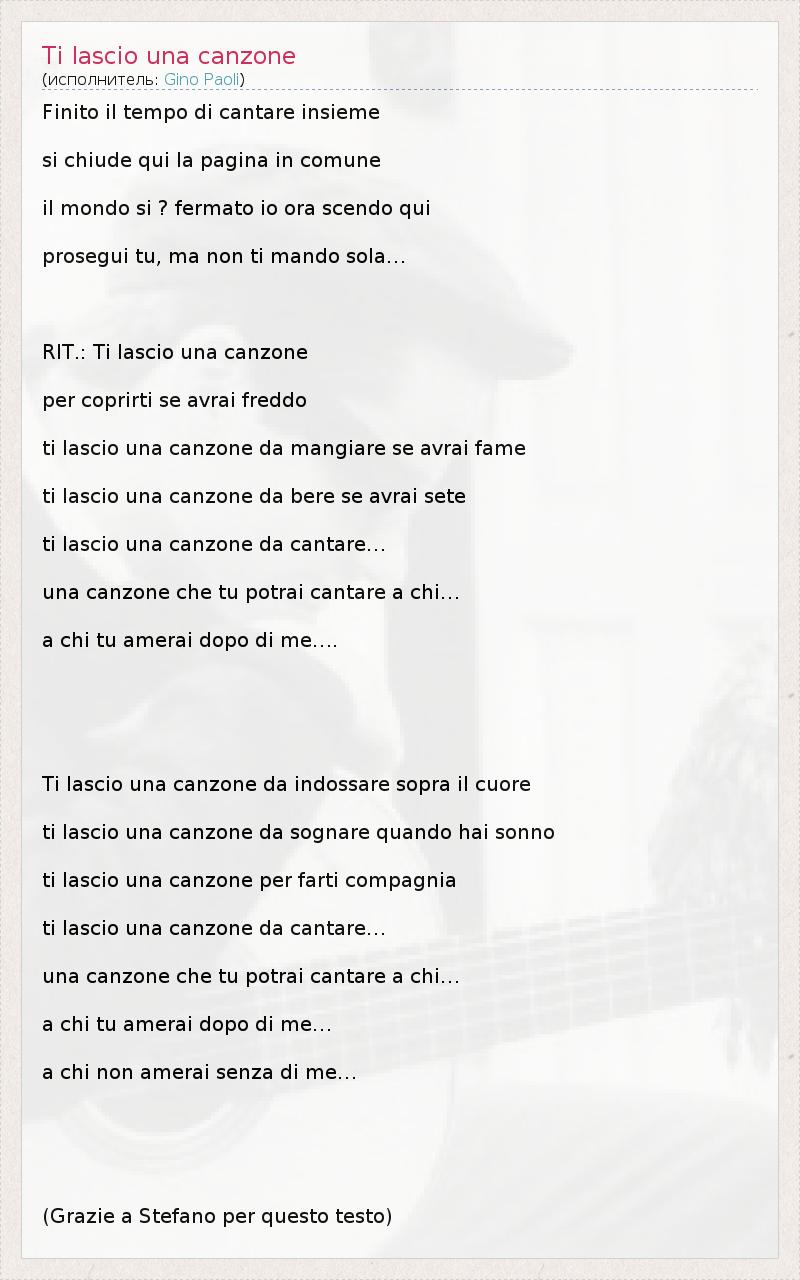 А как ты думаешь, о чем песня "Ti lascio una canzone" ?