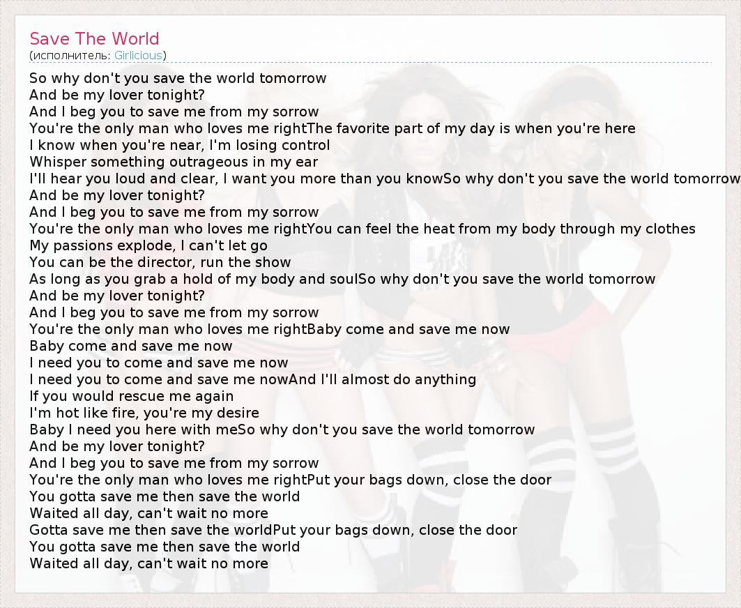 As long as you grab a hold of my body and soulSo why don't you save the world tomorrow