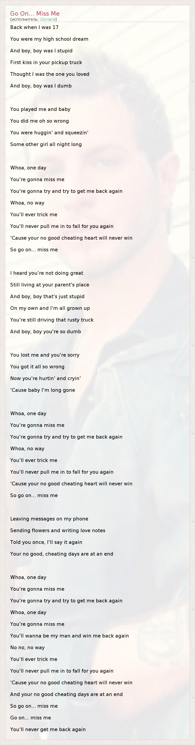А как ты думаешь, о чем песня "Go On... Miss Me" ?