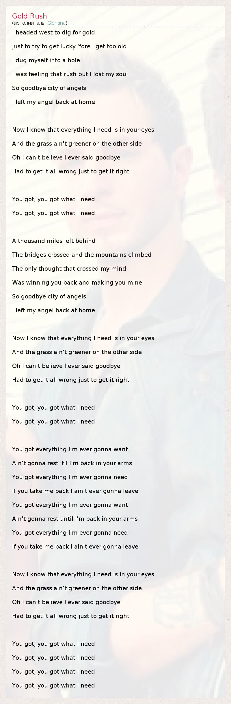 А как ты думаешь, о чем песня "Gold Rush" ?