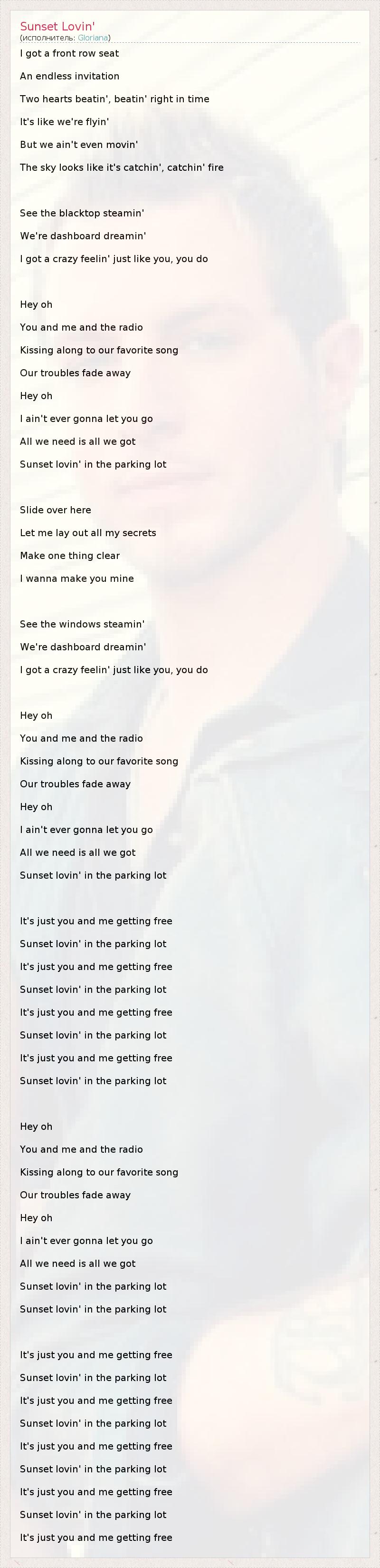 А как ты думаешь, о чем песня "Sunset Lovin'" ?
