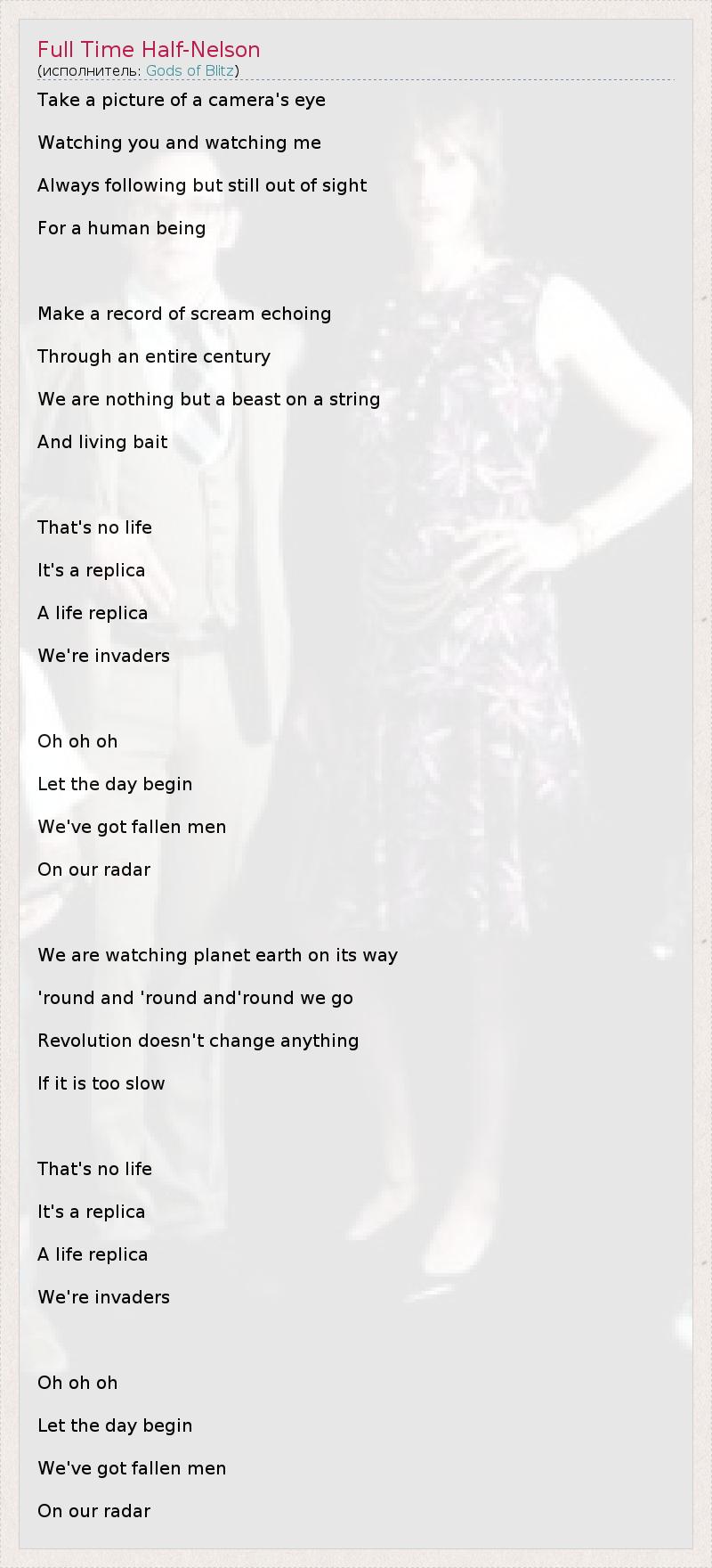 А как ты думаешь, о чем песня "Full Time Half-Nelson" ?
