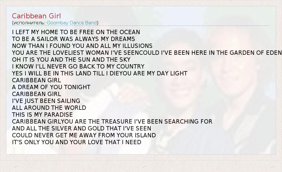 А как ты думаешь, о чем песня "Caribbean Girl" ?