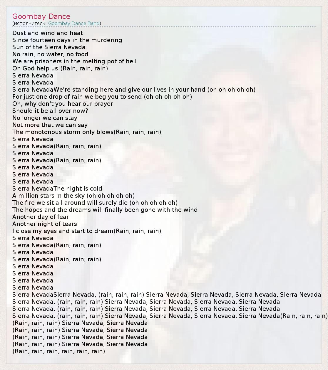 Sierra NevadaSierra Nevada, (rain, rain, rain) Sierra Nevada, Sierra Nevada, Sierra Nevada, Sierra Nevada