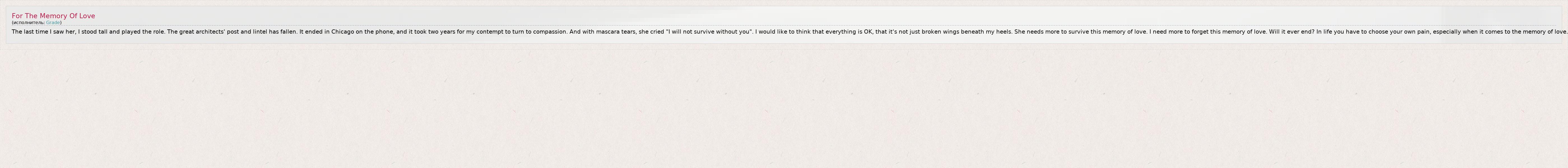 А как ты думаешь, о чем песня "For The Memory Of Love" ?
