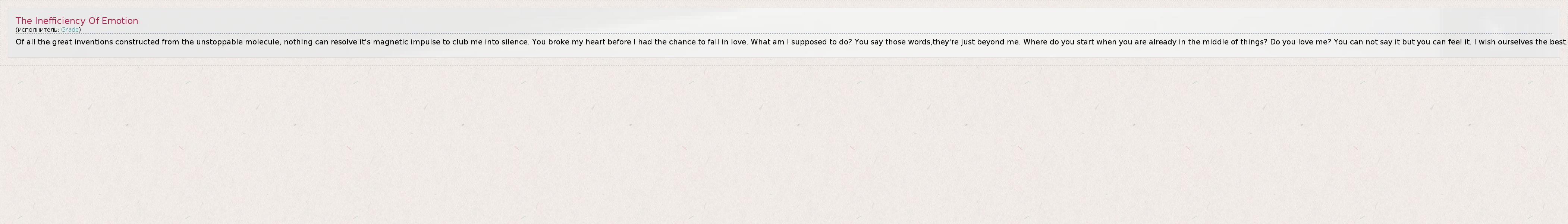 А как ты думаешь, о чем песня "The Inefficiency Of Emotion" ?