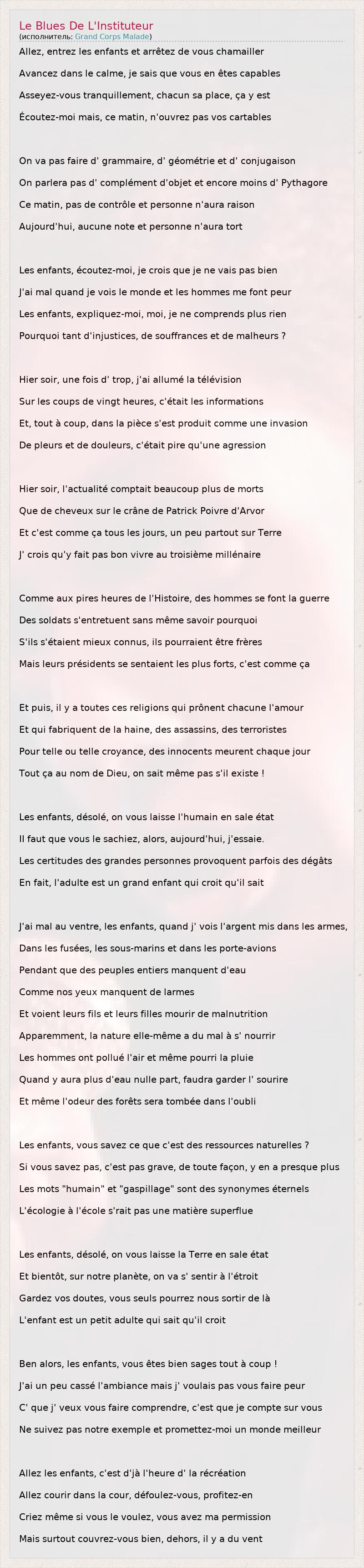 А как ты думаешь, о чем песня "Le Blues De L'Instituteur" ?