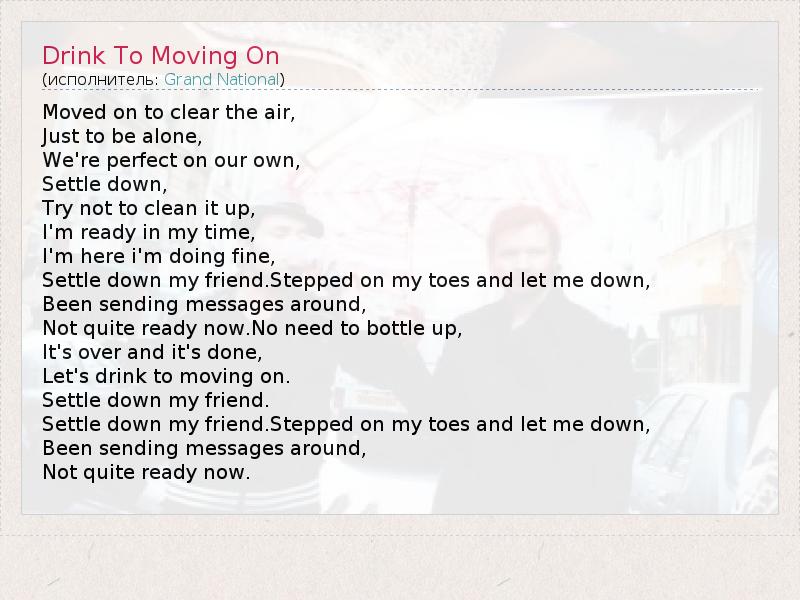 А как ты думаешь, о чем песня "Drink To Moving On" ?