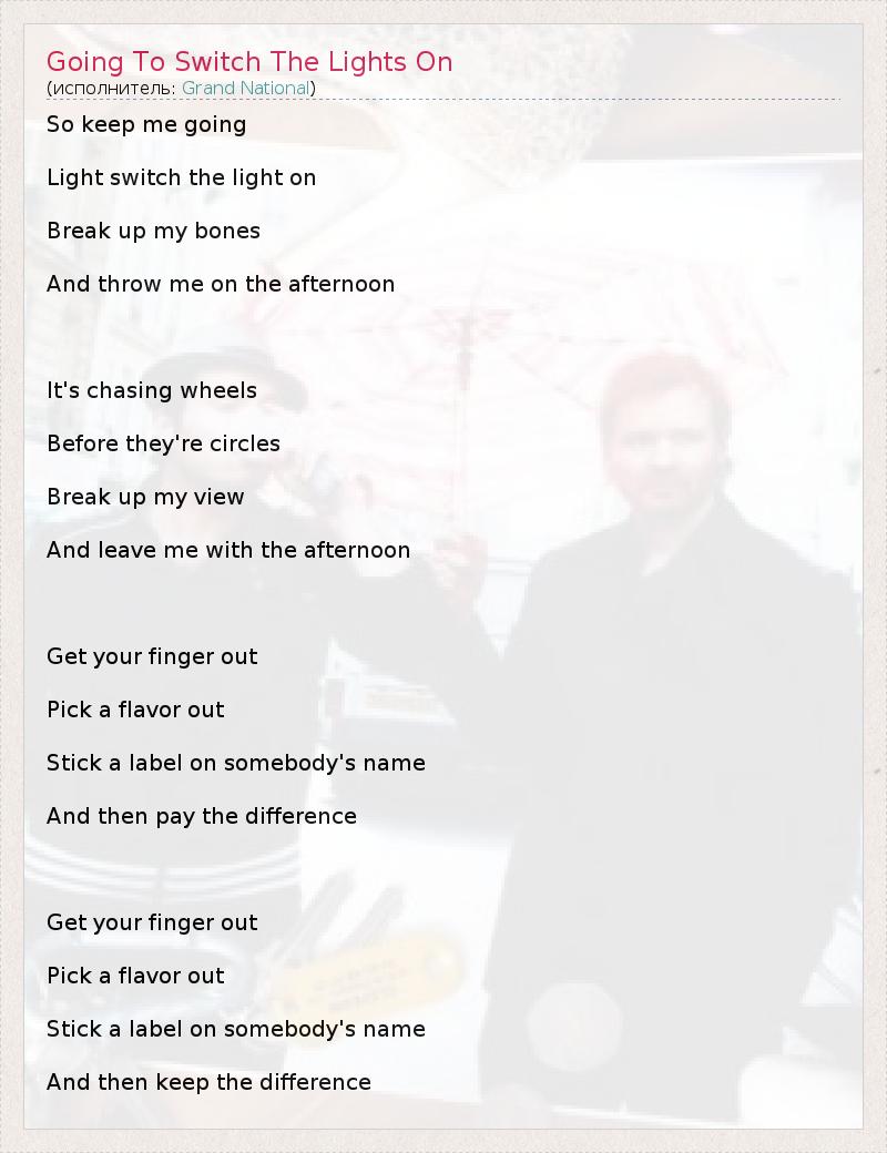 А как ты думаешь, о чем песня "Going To Switch The Lights On" ?
