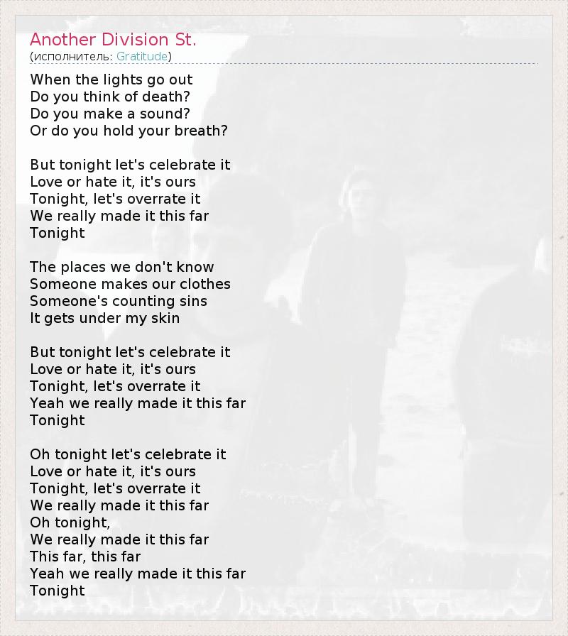 Это интересно:Gratitude - рок-группа из Сан-Франциско, штат Калифорния, США, основана в 2003 году Джоханом Матрангой (Johan Matranga) и гитаристом Марком Вайнбергом (Mark Weinberg), первоначально игравшим в группе Crumb. В состав группы также вошли гитарист Джереми Тапперо (Jeremy Tappero) и бас-гитариста Боба Линдси (Bob Lindsey). Барабанщик Дэвид Йарнстром (David Jarnstrom) присоединился к группе непосредственно перед релизом их первого альбома... продолжение