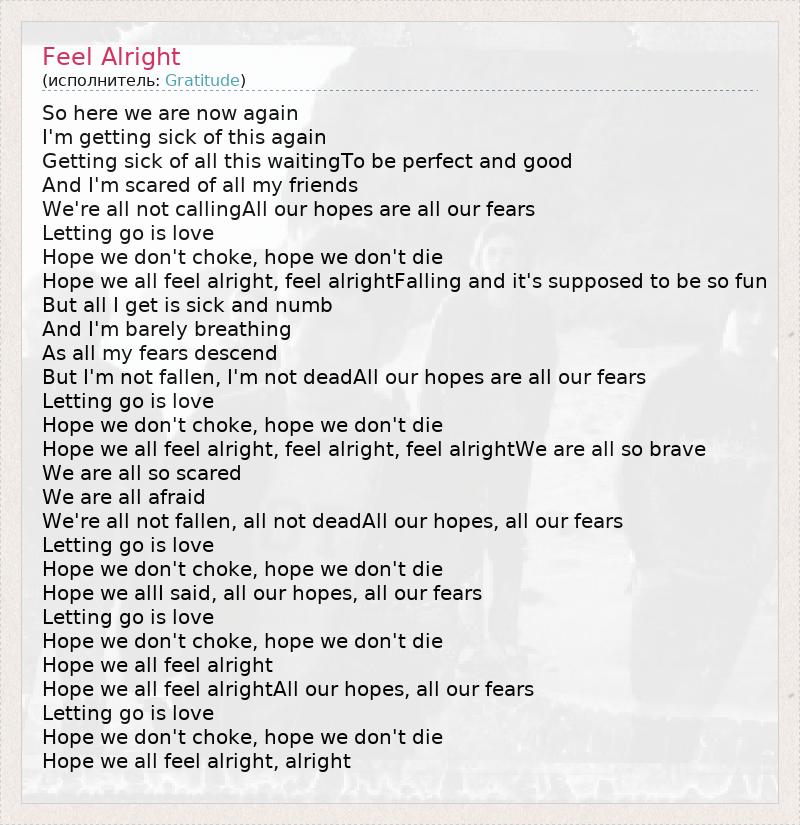 А как ты думаешь, о чем песня "Feel Alright" ?
