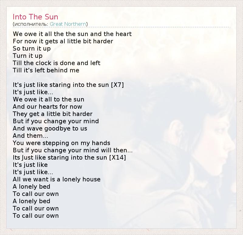 А как ты думаешь, о чем песня "Into The Sun" ?
