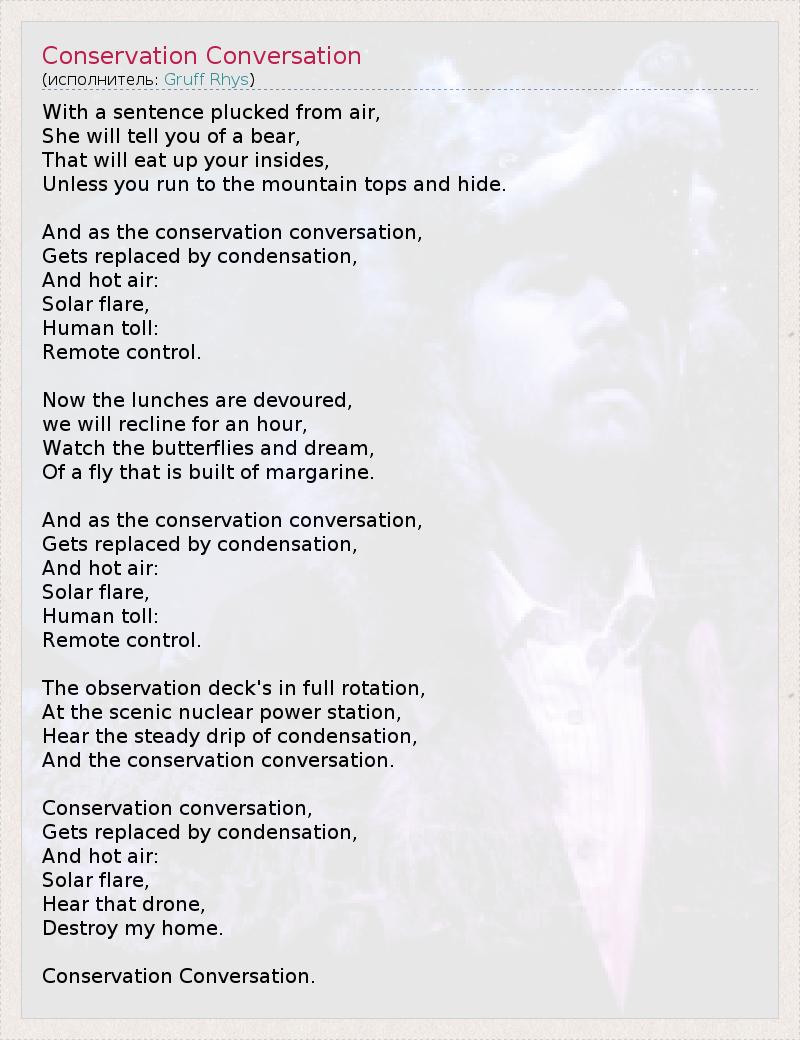 А как ты думаешь, о чем песня "Conservation Conversation" ?