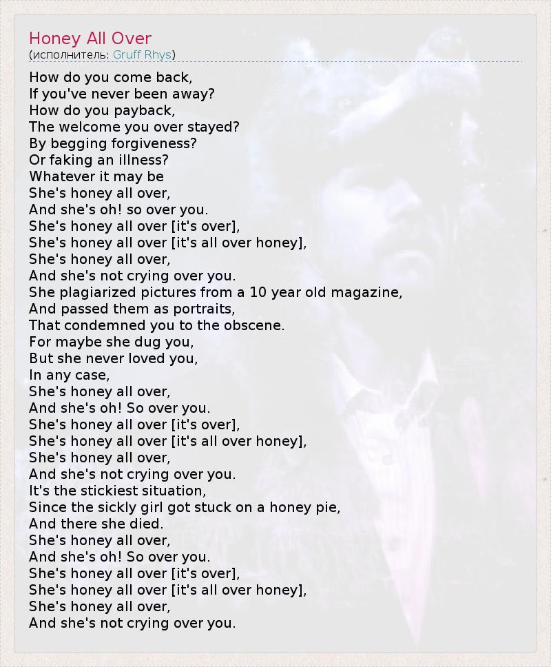 А как ты думаешь, о чем песня "Honey All Over" ?