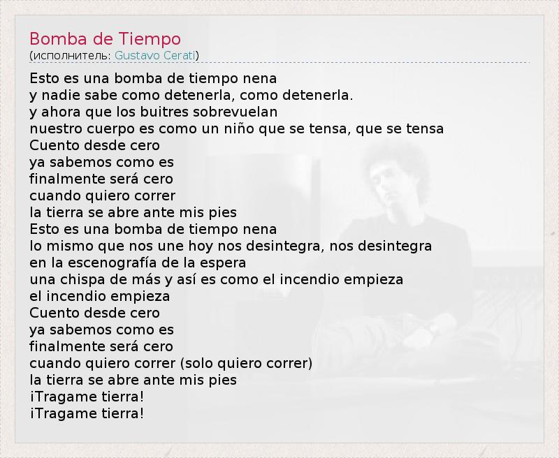 А как ты думаешь, о чем песня "Bomba de Tiempo" ?