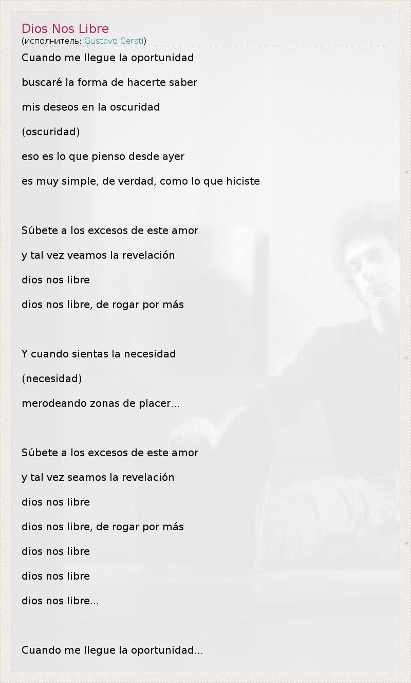 А как ты думаешь, о чем песня "Dios Nos Libre" ?