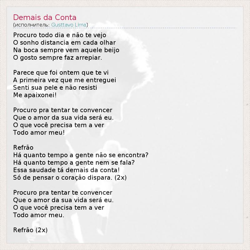 А как ты думаешь, о чем песня "Demais da Conta" ?