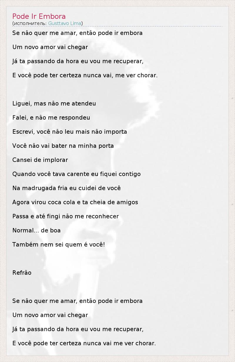А как ты думаешь, о чем песня "Pode Ir Embora" ?