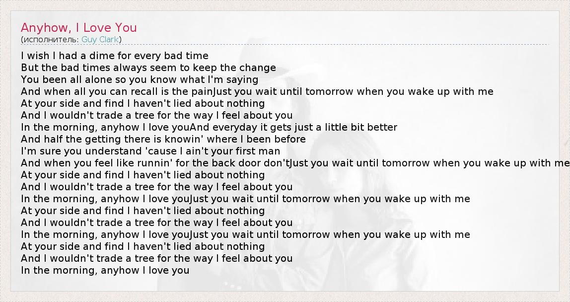 А как ты думаешь, о чем песня "Anyhow, I Love You" ?