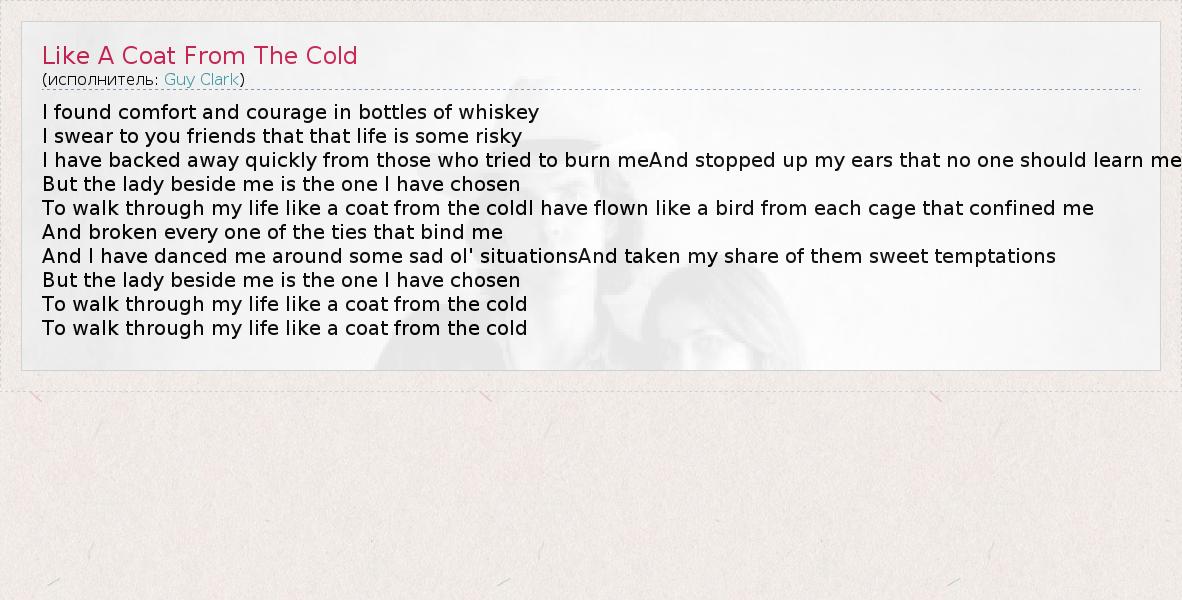 А как ты думаешь, о чем песня "Like A Coat From The Cold" ?
