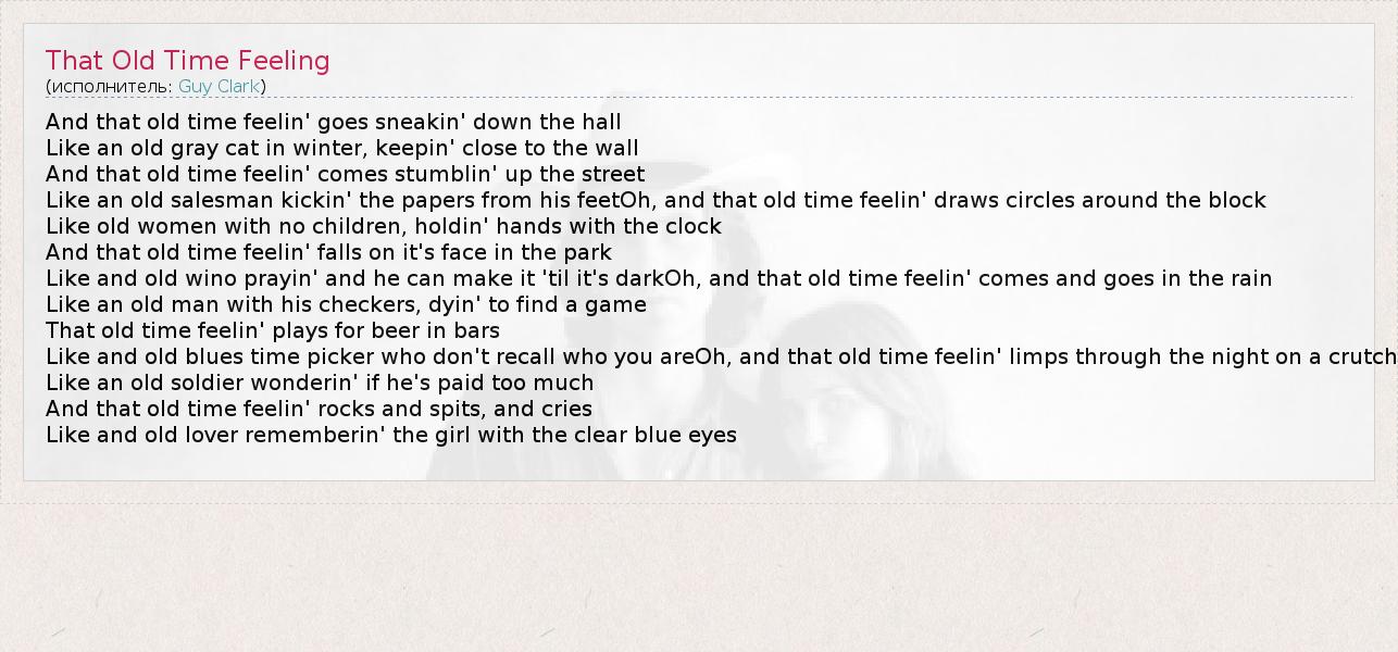 А как ты думаешь, о чем песня "That Old Time Feeling" ?