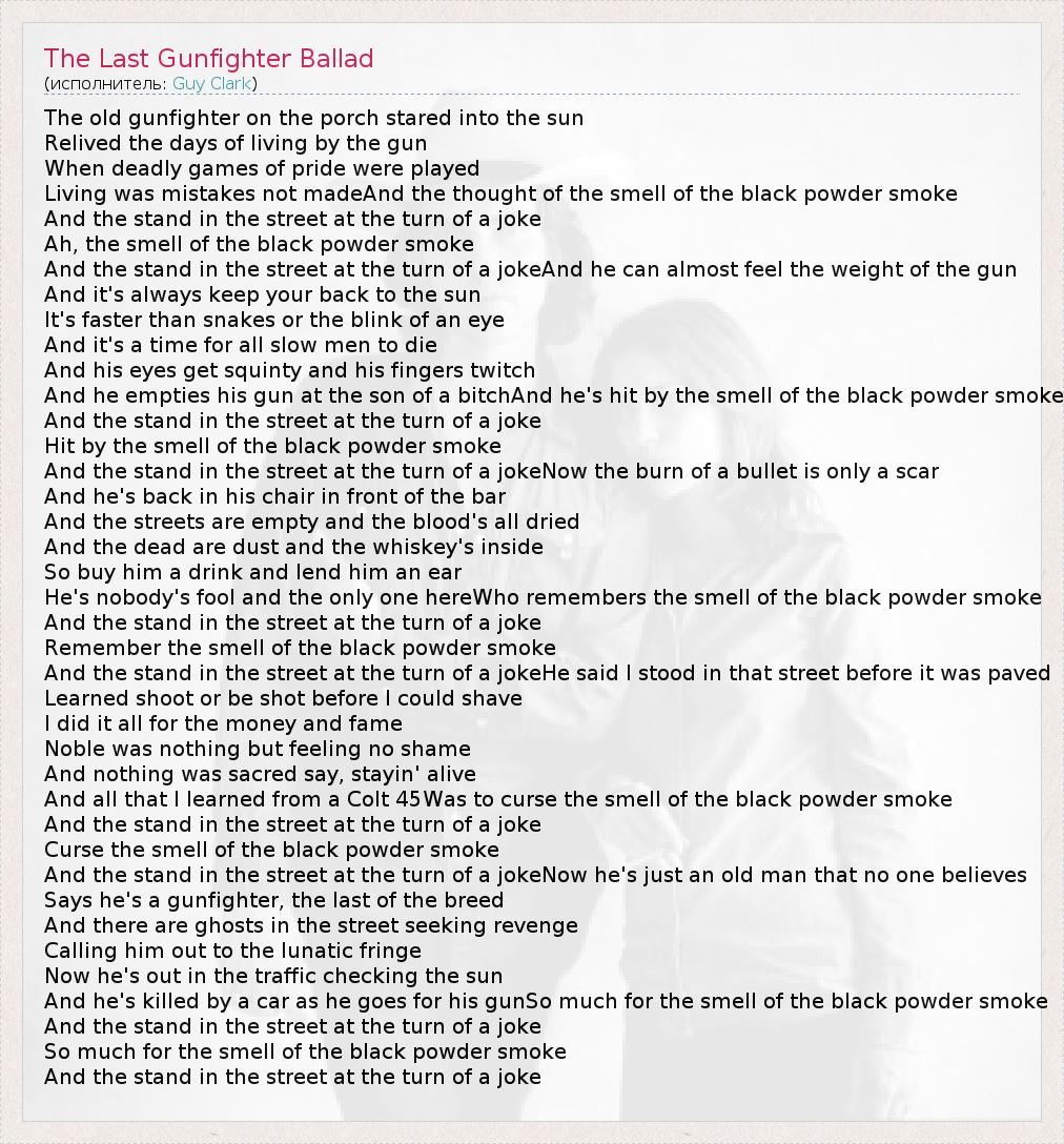 А как ты думаешь, о чем песня "The Last Gunfighter Ballad" ?