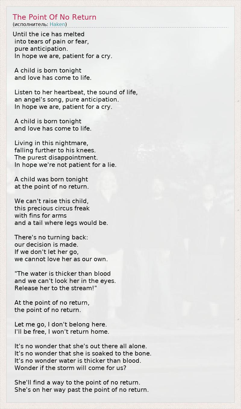 А как ты думаешь, о чем песня "The Point Of No Return" ?