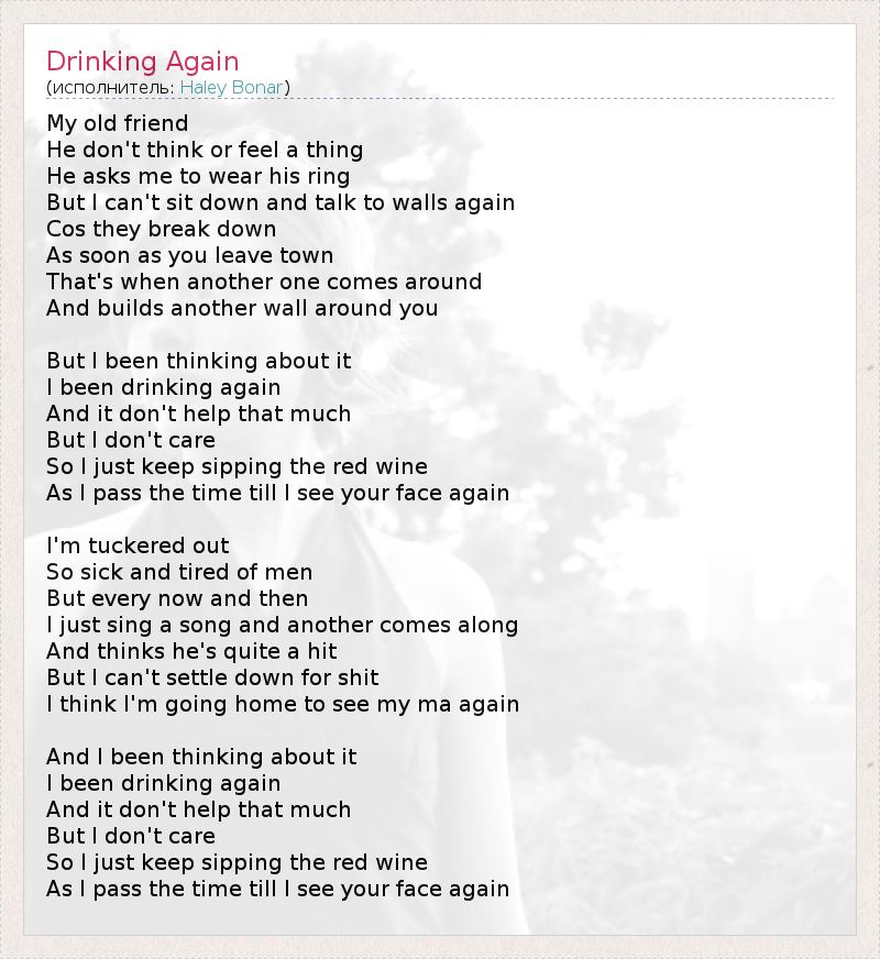 А как ты думаешь, о чем песня "Drinking Again" ?