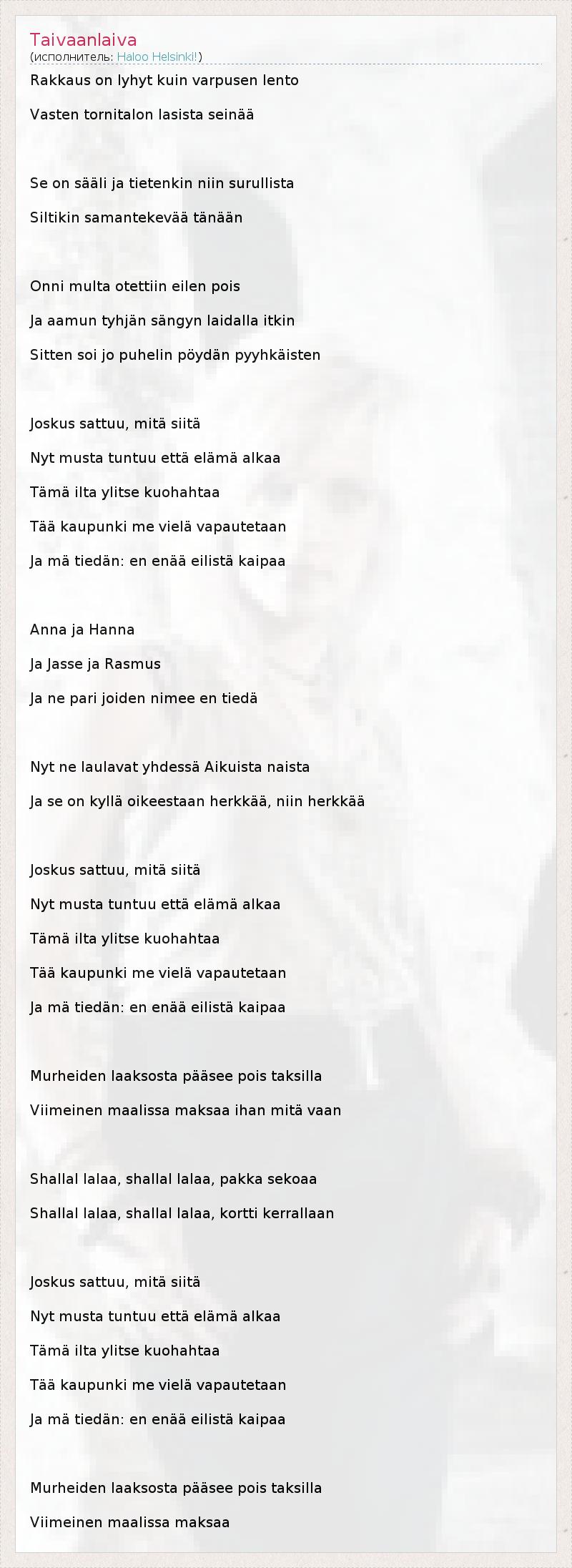 А как ты думаешь, о чем песня "Taivaanlaiva" ?