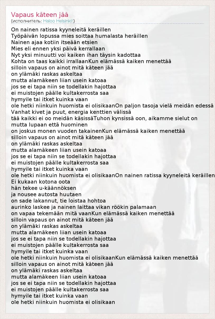 А как ты думаешь, о чем песня "Vapaus käteen jää" ?