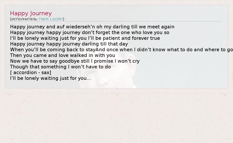 А как ты думаешь, о чем песня "Happy Journey" ?