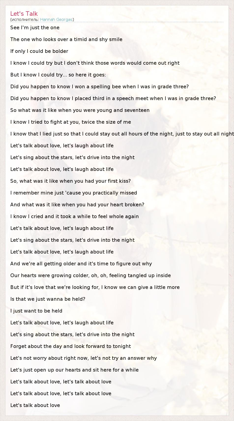 А как ты думаешь, о чем песня "Let's Talk" ?