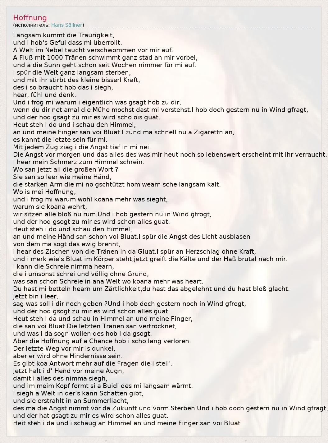 Aber die Hoffnung auf a Chance hob i scho lang verloren.