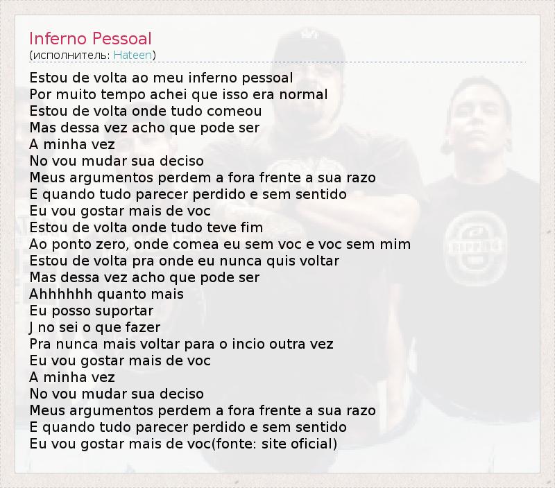А как ты думаешь, о чем песня "Inferno Pessoal" ?