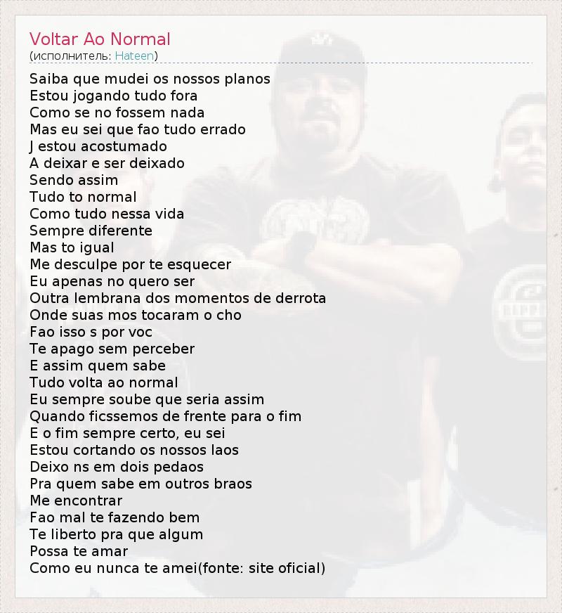 А как ты думаешь, о чем песня "Voltar Ao Normal" ?
