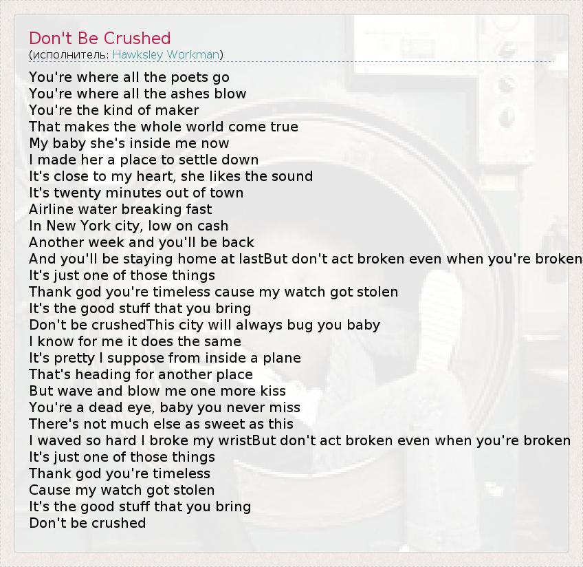 А как ты думаешь, о чем песня "Don't Be Crushed" ?