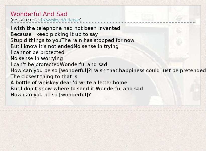 А как ты думаешь, о чем песня "Wonderful And Sad" ?